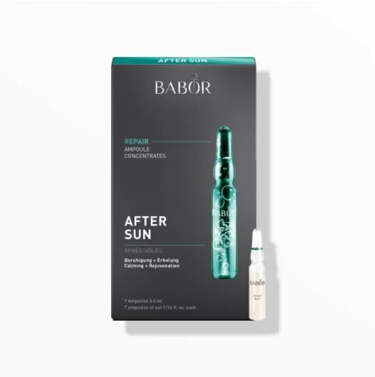 De zonnegroet aan de huid. Het snel intrekkende werkstofconcentraat verkoelt en verzorgt de huid na het zonnen.